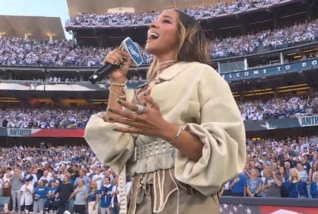 Following the epic 18-inning showdown in Game 3, Dodger Stadium was packed once again on Tuesday for the extremely crucial fourth game. Pasadena native and singer Tinashe was chosen to perform “The Star-Spangled Banner,” and fans couldn’t stop raving about both her powerful vocals and her dazzling appearance. “Tinashe is probably the most beautiful human on the planet,” one commenter posted on X.